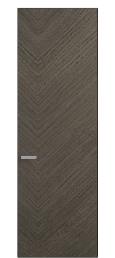Полотно Rift в скрытом алюминиевом коробе становится полноценным элементом декора. В коллекции представлено 9 моделей дверей в высоте до 3 метров. Рисунок раскладки шпона варьируется от простого до сложного. «Рубашка» для каждого полотна подбирается вручную по цвету, текстуре и фактуре.